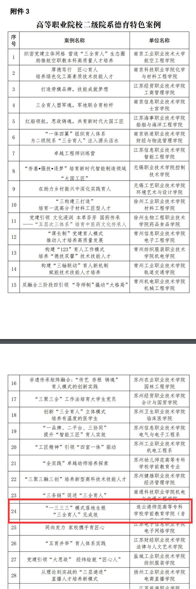 根據(jù)《省教育廳辦公室關(guān)于加強(qiáng)職業(yè)院校“三全育人”典型學(xué)校培育建設(shè)的通知》(蘇教辦職函〔2022〕7號(hào))要求,經(jīng)各地各校申報(bào)、市級(jí)推薦和專家審核層層選拔,我校學(xué)前教育學(xué)院(音樂學(xué)院)報(bào)送的《“一三三三”模式落地生根 “三全育人”見成效》入選省教育廳高等職業(yè)院校二級(jí)院系德育特色案例。