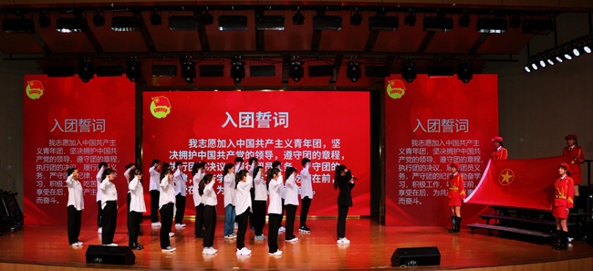集中入團儀式在莊重的國歌中拉開序幕,優(yōu)秀共青團員代表為新團員佩帶團徽,并面對團旗莊嚴宣誓。風采大賽現(xiàn)場,12支參賽的團支部通過小品、演講、合唱、朗誦、歌舞等形式多樣、創(chuàng)意無限的表演形式,生動形象地展現(xiàn)了團支部成員們團結(jié)向上、積極進取的精神面貌,呈現(xiàn)了團員青年的家國情懷與使命擔當。他們真情實感的表演,贏得了現(xiàn)場評委和觀眾們的陣陣掌聲。