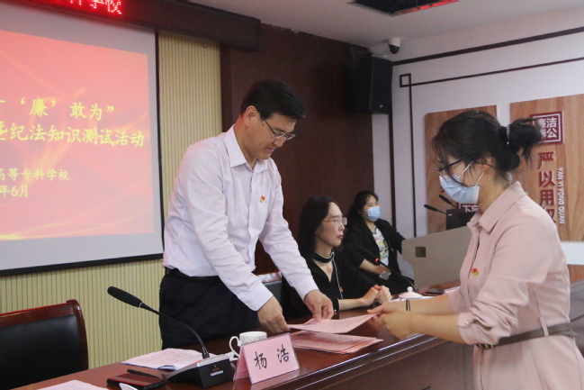 開(kāi)展廉潔承諾暨紀(jì)法知識(shí)測(cè)試。學(xué)校向年輕干部發(fā)放了《年輕干部廉潔教育案例讀本》和《年輕干部家屬助廉倡議書(shū)》,年輕干部向?qū)W校黨委遞交了廉潔承諾書(shū),進(jìn)行了廉潔從政宣誓并參加了紀(jì)法知識(shí)測(cè)試。校黨委書(shū)記楊浩帶領(lǐng)與會(huì)年輕干部重溫了習(xí)近平總書(shū)記2022年3月在中央黨校中青年干部培訓(xùn)班開(kāi)班式上的重要講話(huà)精神,并從“廉”和“為”兩個(gè)方面對(duì)學(xué)校年輕干部提出了要求。他指出“廉”要做到“明身份、知規(guī)矩、守底線”?!盀椤本鸵敫墒?、敢干事、會(huì)干事、干成事、不出事。
