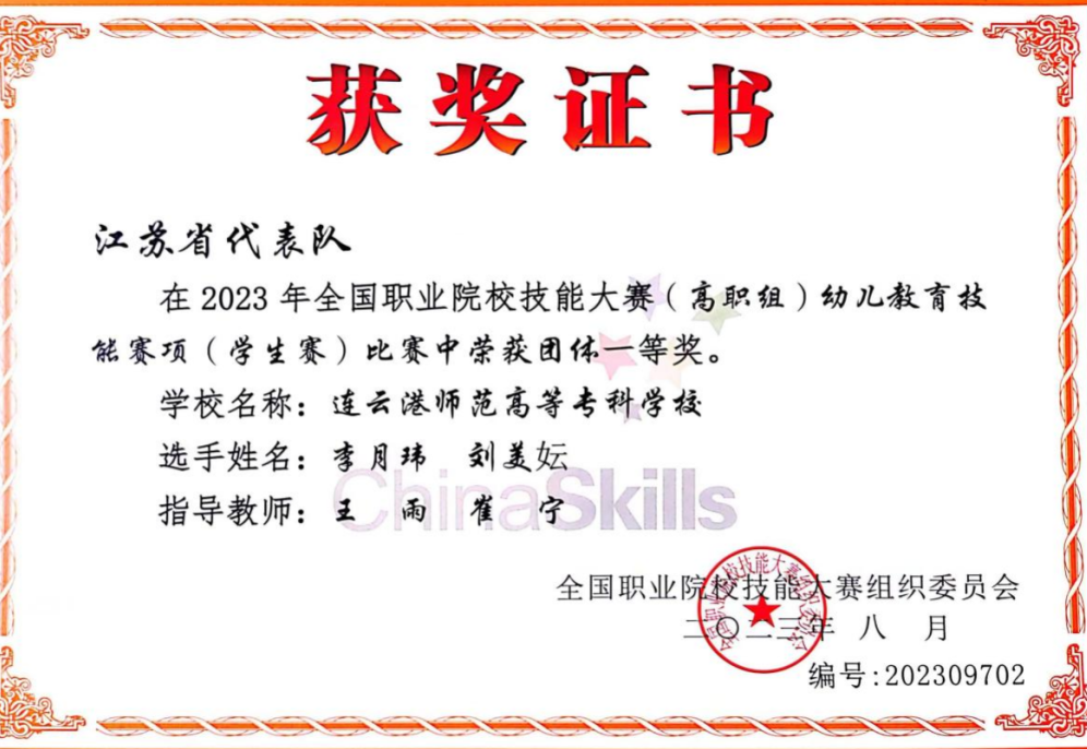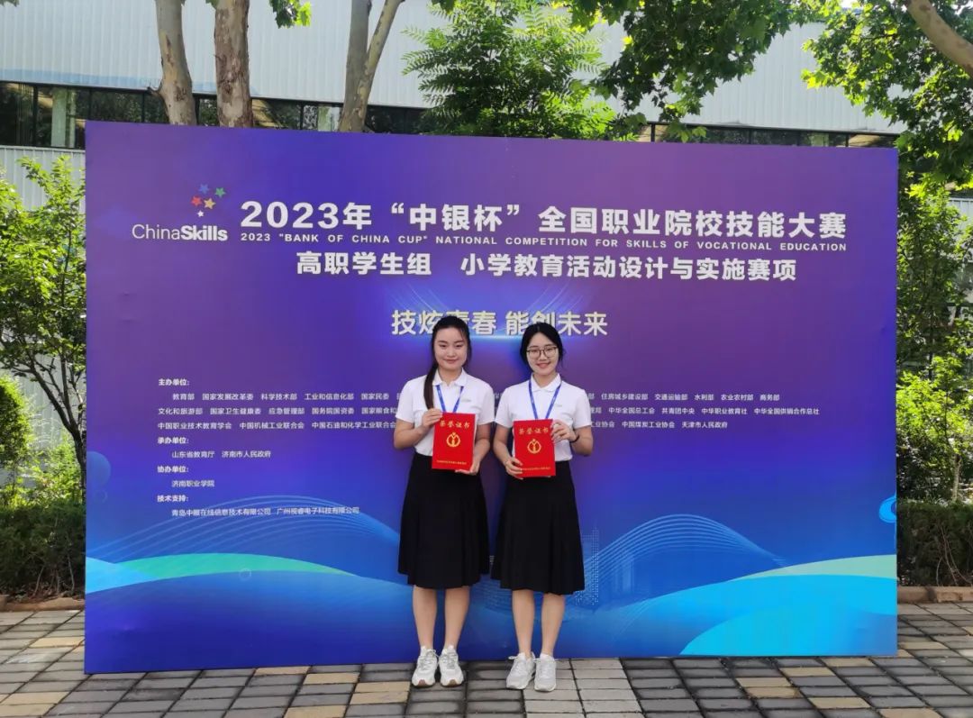 7月7日至11日,由教育部、國家發(fā)展改革委等35個(gè)部門共同主辦,山東省教育廳、濟(jì)南市人民政府承辦的2023年全國職業(yè)院校技能大賽高職學(xué)生組“小學(xué)教育活動(dòng)設(shè)計(jì)與實(shí)施”賽項(xiàng)在山東濟(jì)南職業(yè)學(xué)院舉行。本次比賽共有來自全國25個(gè)省、自治區(qū)、直轄市48支參賽隊(duì)的96名選手同臺(tái)競技,共評(píng)出5個(gè)一等獎(jiǎng)、10個(gè)二等獎(jiǎng)、14個(gè)三等獎(jiǎng)。連師專參賽隊(duì)作為江蘇省2支代表隊(duì)之一參加比賽。初等教育學(xué)院蘇婉泠和文學(xué)院余綺云兩位選手在比賽中沉著應(yīng)戰(zhàn),憑借扎實(shí)的教學(xué)基本功、良好的心理素質(zhì)和穩(wěn)定的現(xiàn)場發(fā)揮,最終榮獲二等獎(jiǎng)。