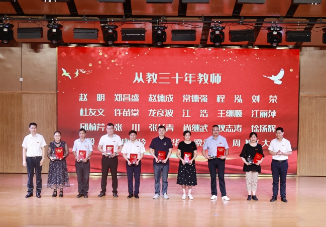 大會(huì)舉行了新教師入職儀式,38位新教師進(jìn)行入職宣誓,并為指導(dǎo)教師代表獻(xiàn)花。大會(huì)還為從教三十年教師頒發(fā)了榮譽(yù)證書和紀(jì)念品。