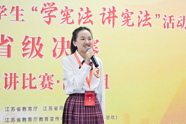 為深入學習貫徹黨的二十大精神和習近平法治思想,推動青少年憲法學習宣傳教育走深走實,根據(jù)教育部的統(tǒng)一部署,今年6月起,省教育廳組織開展了第八屆全省學生“學憲法講憲法”活動。我校胡倚菲同學從93所高校選送的93名選手中脫穎而出,成功晉級決賽。