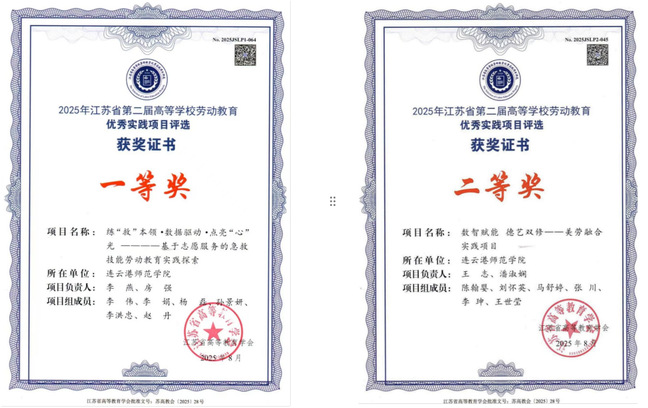 近日,江蘇省高等教育學(xué)會公布了第二屆高等學(xué)校勞動教育優(yōu)秀實踐項目評選結(jié)果,我校2個項目入選。《練“救”本領(lǐng)·數(shù)據(jù)驅(qū)動·點亮“心”光——基于志愿服務(wù)的急救技能勞動教育實踐探索》榮獲一等獎,《數(shù)智賦能德藝雙修——美勞融合實踐項目》榮獲二等獎。