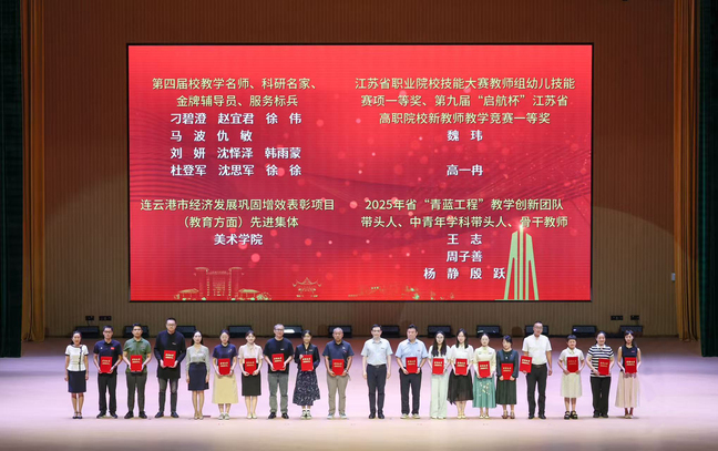 會上,校領(lǐng)導(dǎo)分別為江蘇省教學(xué)名師獲得者、連云港市勞動模范獲得者、從教30年教師、省青藍(lán)工程教學(xué)創(chuàng)新團隊、中青年學(xué)科帶頭人和骨干教師、省技能大賽教師組一等獎獲得者、省新教師教學(xué)競賽一等獎獲得者以及校第四屆教學(xué)名師、科研名家、金牌輔導(dǎo)員和服務(wù)標(biāo)兵等頒獎。