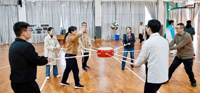 開幕式上,航空模型盤旋升空、機(jī)器人精準(zhǔn)起舞,科技元素驚艷全場;孫悟空經(jīng)典形象靈動登場,與太極扇、舞龍舞獅的傳統(tǒng)韻味相映成趣;啦啦操的活力節(jié)拍與民族舞的柔美身姿交織,盡顯多元文化魅力。各黨總支、各學(xué)院的師生們進(jìn)行了廣播體操、健身氣功比賽。